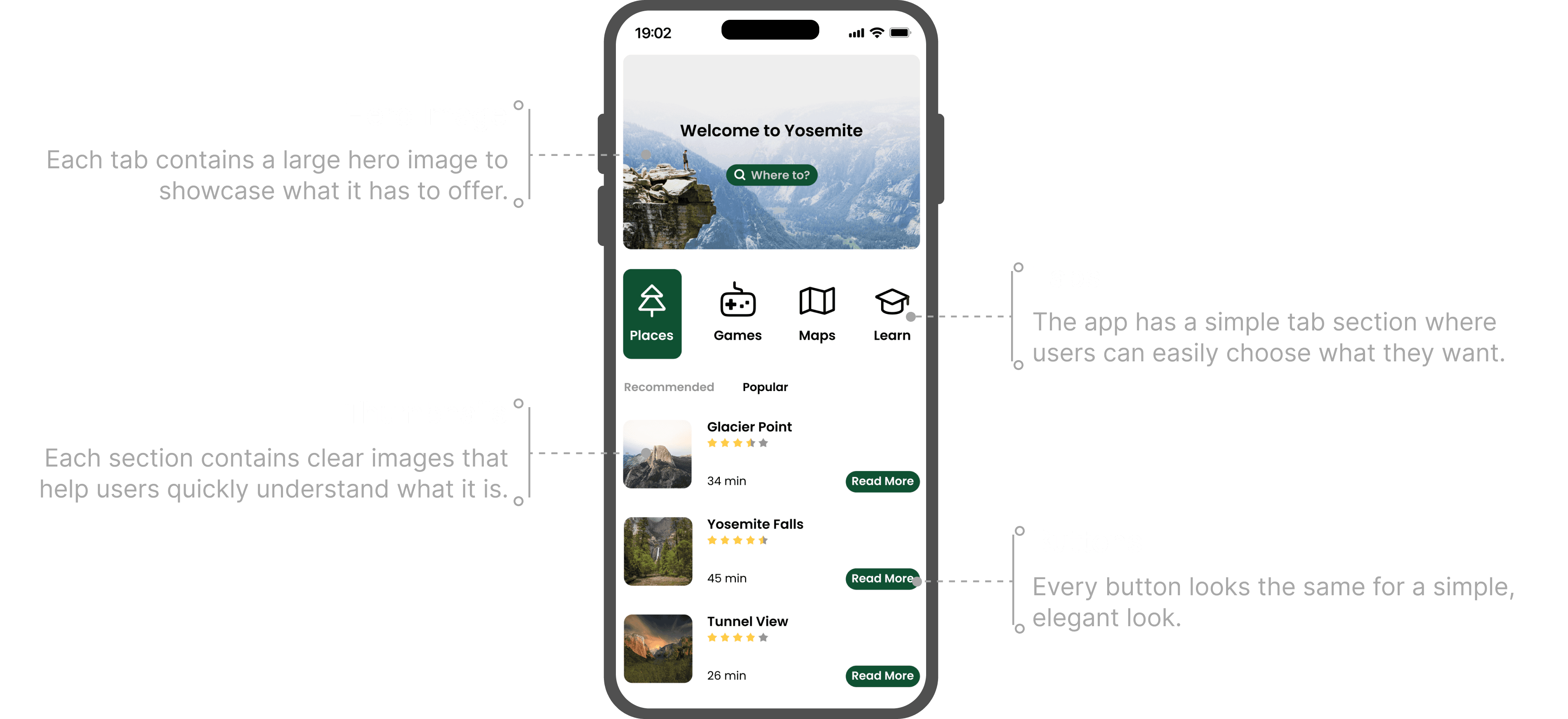 By keeping Mark’s persona in mind, I was able to design the app to cater to users who seek both adventure and learning, addressing their concerns while ensuring the app remained fun and engaging. This research, combined with feedback from other users, allowed me to create a product that truly meets the needs of visitors who want to connect with Yosemite in a meaningful way.