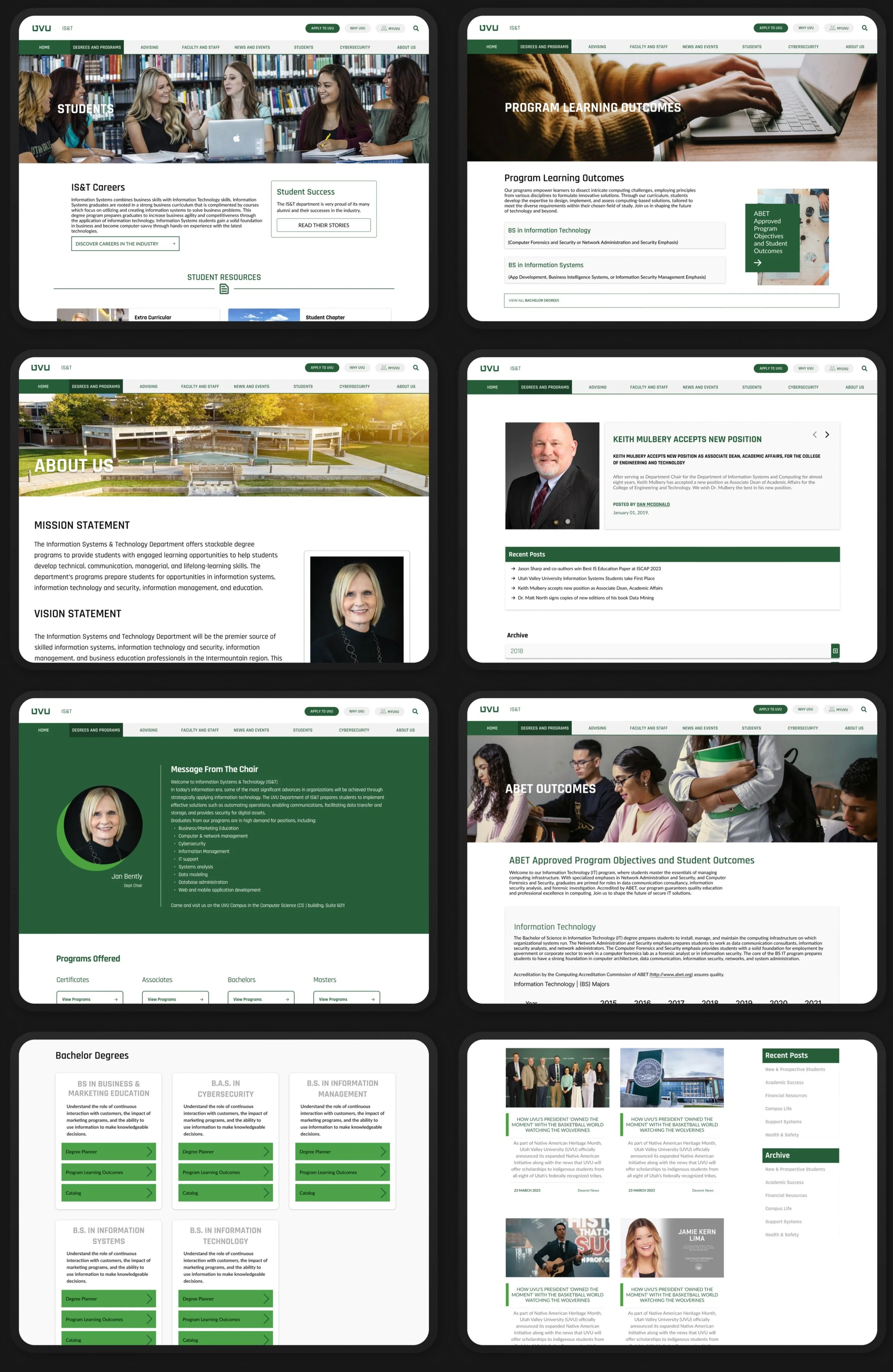 I worked on a UX redesign project for the Utah Valley University Information Systems & Technology (IS&T) website, we aimed to enhance user engagement and improve the overall experience. Our primary objectives were to revamp the site’s structure, design an inviting homepage with original imagery, and cater to non-traditional students by integrating effective call-to-action elements and reducing repetitive content.